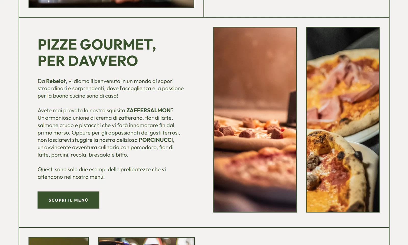 Alset Studio ha accolto la sfida con entusiasmo, creando un sito web statico HTML in doppia lingua con un menu online facile da utilizzare e un design coerente con il brand del Rebelot. Ha anche curato un servizio fotografico professionale per fornire contenuti visivi di alta qualità. Inoltre, ha realizzato un menù online fruibile con QR code per i clienti, semplificando ulteriormente l'accesso e l'interazione con il sito.